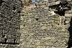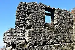 Převážná většina zdiva je postavena z místního čediče, který je jen ojediněle doplněn tesanými pískovcovými prvky nebo cihlami a dlaždicemi. Hlavním obranným prvkem byla osmdesát až sto centimetrů tlustá hradba, před niž zcela vystupují dvě bašty, jejichž štěrbinová okna umožňují postřelování kurtin.[7]
