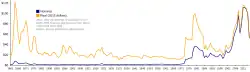 • V roce 2010 U.S. Energy Information Administration (EIA) vydala ve své výroční zprávě průběh globální ropné produkce, která (vedle několika až příliš optimistických odhadů do budoucna) ukázala, že skutečná ropná produkce mezi roky 2009 a 2010 klesla.[11]