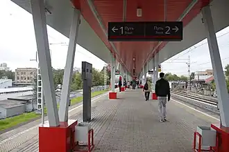 Stanice disponuje jedním ostrovním nástupištěm. U jižní hrany nástupiště zastavují vlaky jedoucí ve směru hodinových ručiček, u severní hrany zastavují vlaky, které jedou opačným směrem. Stanice disponuje dvěma vchody do vestibulu z obou stran železnice, jsou laděny do bílé a červené barvy.