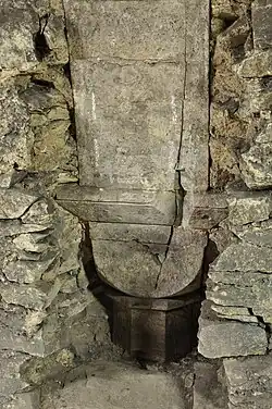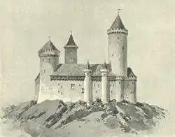Původní románský a později gotický hrad měl lichoběžníkový půdorys, jehož rozměry byly menší než rozměry zámku. Vstup chráněný příkopem se nacházel na jižní straně. Ze zástavby románského hradu známe pouze suterén paláce, ke kterému podle historických plánů na východní straně přiléhala okrouhlá obytná věž nejistého stáří. Z gotické fáze se dochovala jen obezdívka nárožní věžice.[2]