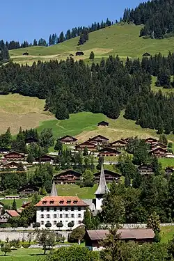 Obec má dobré dopravní spojení: leží na hlavní silnici č. 11, která vede z Aigle přes průsmyk Col des Mosses, Château-d’Oex a Saanen do Zweisimmenu v oblasti Berner Oberland. Úsek Château-d’Oex – Saanen dráhy Montreux-Berner Oberland-Bahn (MOB, francouzsky Chemin de fer Montreux-Oberland bernois) byl otevřen 20. prosince 1904.