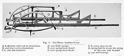 Dvousedadlový vůz je vybaven tvarovanými polstrovanými sedadly, přičemž řidičovo místo je mělčí a méně komfortní než místo spolucestujícího. Obě strany karoserie jsou tvořeny odlitým hliníkovým skeletem na dřevěném rámu z jasanového dřeva. Obě strany jsou vyztuženy od předních sedadel až po zadní část hliníkovými lištami. V zadní části je základna tvořena větší částí dílů dřevěného rámu z jasanu o čemž tehdejší automobilka Rover tvrdila, že na tento rám lze namontovat i rozměrnější tělo jednoduché konstrukce. Zadní pružiny jsou pak značně prodloužené.