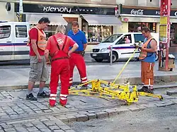 Ruční rozchodkou se měří hodnota rozchodu nezatížené koleje.