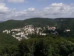 Pohled na lázeňskou část města Karlovy Vary z rozhledny Diana