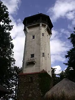 S výstavbou rozhledny bylo započato v roce 1913, náklady činily 110 tisíc korun. Dne 27. května 1914 byla rozhledna slavnostně otevřena. Již od počátku byla vybavena elektrickou zdviží, která byla rekonstruována naposledy roku 1998. Za první republiky nesla jméno Hanse Kudlicha, rakouského revolucionáře, který roku 1848 emigroval do USA. Po roce 1945 nesla krátce název Benešova rozhledna. Nad kamenným podstavcem čtyřboké věže spočívá cihlová nástavba, zakončená dřevěným vyhlídkovým ochozem.