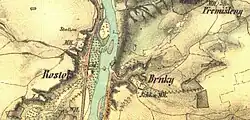 Roztoky na mapě druhého vojenského mapování z let 1836–1852 (zkratky: MH – dvůr, Schl. – zámek, Z.S. – cihelna, W.H. – hostinec