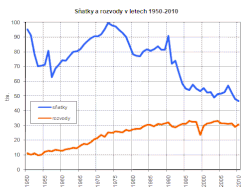 - ↑ Sňatky a rozvody | Století statistiky. www.czso.cz [online]. [cit. 2021-07-09]. Dostupné v archivu pořízeném dne 2021-07-09.