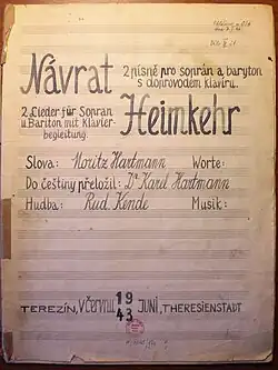 - Návrat (1943) - dvě písně pro soprán a baryton s klavírním doprovodem vzniknuvší za jeho pobytu v Terezíně na slova Moritze Hartmanna, do češtiny přeložené Dr. Karlem Hartmannem, přechovává Jihočeské muzeum v Českých Budějovicích