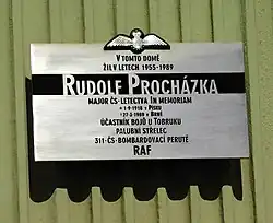 - ↑ a b c d e f g h FOJČÍKOVÁ, Zuzana. Letce RAF připomíná lidem pamětní deska [online]. web: Idnes cz, 2008-0-12 [cit. 2023-07-31]. Dostupné online.