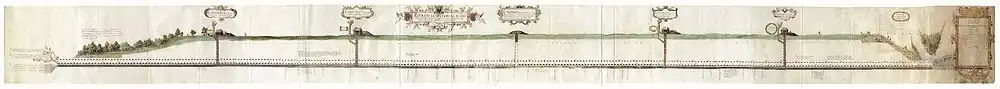 Štola o délce 1098 metrů překonává výškový rozdíl hladin Vltavy 110 cm. Odběrné zařízení se nachází ve zdrži Helmovského jezu, ve žlutě omítnutém domku, tak zvané havírně, na levém břehu Vltavy pod Letenskými sady u nábřeží Edvarda Beneše, mezi Čechovým a Štefánikovým mostem, kde je mechanismus stavidel, jimiž se reguloval přítok vody do štoly. Trasa je vedena pod Letenskými sady a ulicí Nad štolou, dále pod Letenským náměstím. Čechovou ulicí a horní částí Královské obory až k vodovodnímu domku poblíž bývalé Šlechtovy restaurace. Štola probíhá asi 45 metrů pod terénem a dnešní zástavbou Letné.