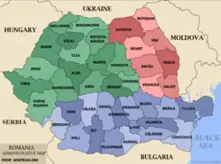 Území Rumunska se dělí na 41 administrativních jednotek (žup) a hlavní město Bukurešť.