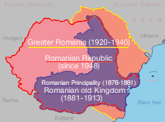 Rumunsko odebralo Bulharsku ve druhé balkánské válce v roce 1913 jižní Dobrudžu. Strach z bulharské odvety také rozhodl o tom, že Rumunsko roku 1916 vstoupilo do první světové války na straně Dohody, a to navzdory tomu, že král Ferdinand I. Rumunský pocházel z německého rodu Hohenzollernů a dlouhodobě se snažil vyjednávat tajné spojenectví s ústředními mocnostmi.[47] Po první světové válce se Rumunsko rozšířilo o území patřící Uhersku a carskému Rusku – Sedmihradsko, Bukovinu a Besarábii, čímž vzniklo tzv. Velké Rumunsko.[48][49] Roku 1919 Rumunsko vojensky zakročilo proti Maďarské republice rad a rumunská vojska obsadila Budapešť.[50] Rumunsko bylo roku 1920 signatářem Trianonské smlouvy, která připravila Maďarsko o velkou část území. V meziválečném období bylo Rumunské království součástí Malé dohody.[51][52] Úzce spolupracovalo s Československem a Jugoslávií proti nárůstu maďarského vlivu.