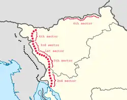 13. března 1938, po anšlusu Rakouska, se zde otevřel nový, 322 km dlouhý, úsek na severozápadní hranici Jugoslávie, ohrožený ze strany nacistického Německa. Ihned vzniká pevnostní úsek č. 6 Jesenice-Ptuj, známý také jako Severní fronta. Zatímco západní část severní hranice procházela horským terénem, takže stačilo opevnit pouze několik průsmyků, východní vyžadovala mnohem důkladnější opevnění. Bylo zda navrženo opevnění významných hraničních přechodů Šentilj, Trate a Gornja Radgona s dalšími několika většími i menšími obrannými postaveníme dále ve vnitrozemí. V nejsilněji opevněné oblasti kolem města Maribor činila hloubka obrany až 60 km od hranic do vnitrozemí s celkem osmi obrannými postaveními (z toho třemi hlavními).[3]