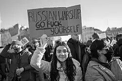 V Praze 10 aktivisté neoficiálně přejmenovali ulici Ruská na Ruská válečná lodi, jdi do prdele!.[12]