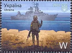 - ↑ KORDOVSKÝ, Jan. Ruská lodi, jdi do pr***e. Podoba speciální ukrajinské známky už je známá. Seznam Zprávy [online]. 2022-03-09 [cit. 2022-03-14]. Dostupné online.