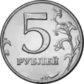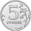 5 rublů | 25 mm | 6,45 g | Bimetal mědi a mědiniklu | Kulatá, střídavě hladká a vroubkovaná (60 vroubků rozdělených do 12 částí se střídá s 12 hladkými částmi) | Znak Ruské banky | Nominální hodnota | 1997–2009 |