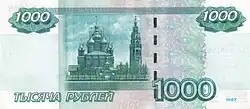 1000 rublů | 157 × 69 mm | Modrozelená | Jaroslavl | Pomník Jaroslava I. Moudrého | Chrám sv. Jana Křtitele |