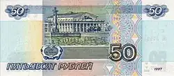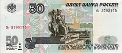 50 rublů | Světlomodrá | Petrohrad | Petropavlovská pevnost | Budova bývalé burzy a Rostrální sloup | |