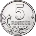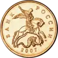 5 kopějek | 18,5 mm | 2,60 g | Bimetal mědiniklu a oceli | Kulatá, hladká | Svatý Jiří | Nominální hodnota | 1997–2017 |