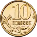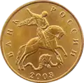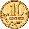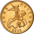 10 kopějek | 17,5 mm | 1,95 g | Mosaz | Kulatá, vroubkovaná (98 vroubků) | Svatý Jiří | Nominální hodnota | 1997–2006 |