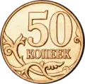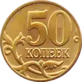 50 kopějek | 19,5 mm | 2,90 g | Mosaz | Kulatá, vroubkovaná (105 vroubků) | Svatý Jiří | Nominální hodnota | 1997–2006 |