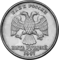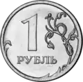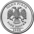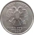 1 rubl | 20,5 mm | 3,25 g | Mědinikl | Kulatá, vroubkovaná (110 vroubků) | Znak Ruské banky | Nominální hodnota | 1997–2009 |