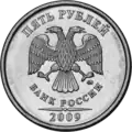 5,00 g | Poniklovaná ocel | Znak Ruské banky | Nominální hodnota | 2009–2015 | |||