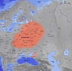 První státní útvar Východních Slovanů vznikl mezi Baltským a Černým mořem, kudy vedly obchodní stezky mezi Skandinávií a Byzantskou říší. Za počátek dějin Ruska je považováno založení Novgorodu roku 862.[33] Roku 882 ovládl novgorodský kníže Oleg z rodu Rurikovců Kyjev, který předtím platil tribut Chazarské říši. Následně Oleg založil Kyjevskou Rus.