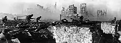 Dne 22. června 1941 hitlerovské Německo porušilo smlouvu o neútočení (pakt Ribbentrop–Molotov) a bez vyhlášení války napadlo Sovětský svaz. Začala Velká vlastenecká válka. Nacistický Generalplan Ost počítal s genocidou Rusů a dalších slovanských národů. Nacisté ovládli většinu evropské části země, která byla těžce poničena, avšak po bojích u Stalingradu a bitvě u Kurska začal obrat ve válce ve prospěch SSSR a jeho západních spojenců. Do léta 1944 byla většina země od okupantů osvobozena. V únoru 1945 pak proběhla na Krymu tzv. jaltská konference, kde se Stalinovi podařilo upevnit sovětský vliv na střední a východní Evropu.[52] Německá invaze do Sovětského svazu si vyžádala více než 20 milionů obětí.[53] Během války zemřelo 6–9 milionů ruských civilistů, včetně milionu lidí při 872 dní dlouhém obležení Leningradu, a okolo 6 milionů vojáků z ruské části SSSR.[54] V německém zajetí zahynulo 3,3 milionu sovětských válečných zajatců.[55] Německý wehrmacht utrpěl 80 % svých ztrát v bojích na východní frontě.[56] Sovětský svaz získal porážkou nacistů velkou prestiž, která přispěla k etablování komunistických diktatur ve státech tzv. východního bloku včetně Československa.
