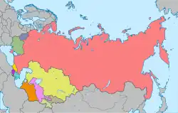 Sovětský svaz měl být reorganizován ve volnější federaci, pro což se vyjádřila většina voličů 17. března 1991 v referendu. Byla zřízena funkce prezidenta RSFSR. 12. června 1991 byl prvním prezidentem Ruska zvolen Boris Jelcin. Tzv. srpnový puč, jehož cílem bylo zrušení demokratických přeměn, byl potlačen.[65] 8. prosince 1991 pak hlavy Ruska, Ukrajiny a Běloruska podepsali Bělověžskou dohodu, prohlášení o vytvoření Společenství nezávislých států stanovící, že „SSSR jako subjekt mezinárodního práva přestal existovat“.[66] 25. prosince 1991 se Ruská sovětská federativní socialistická republika přejmenovala na Ruskou federaci[67] a 26. prosince se SSSR oficiálně rozpadl na Ruskou federaci a dalších 14 postsovětských republik.[68]
