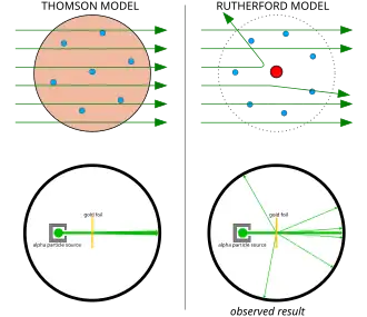 Nejrozšířenějším modelem popisujícím atomy byl na počátku 20. století Thomsonův pudinkový model. Tento vymyslel v roce 1904 Joseph John Thomson, objevitel elektronu. Jeho model počítal se záporně nabitými elektrony, které se měly vznášet uvnitř kladně nabité homogenní koule, podobně jako hrozinky v pudinku, odtud název pudinkový model. Tento model byl ve fyzice dominantní až do roku 1911, kdy Rutherford zveřejnil výsledky svého týmu.