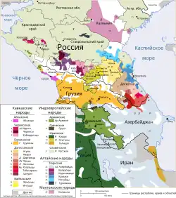 ![]() Etnicko-lingvistická situace na Kavkazu, Rutulský okres označena číslem 11 | |
