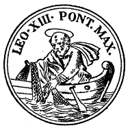 V pečetním poli původně byla vyobrazena scéna zázračného rybolovu sv. Petra přičiněním Kristova zázraku. V legendě této pečeti je uveden titul papeže, jeho jméno a pořadové číslo pontifikátu. V nové ikonografické situaci druhé poloviny 20. století byly ponechány jen ryby jako symbol výše zmíněného rybolovu jasně srozumitelné pro celou katolickou obec.