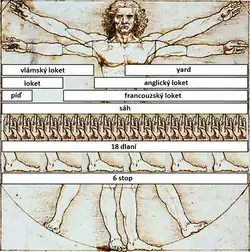 | němčina | Klafter, Faden = 6 Fuß | — resp. ~ 1,8 | |