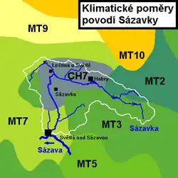 Povodí Sázavky se nachází ve čtyřech klimatických oblastech (dle Quitta, 1971).