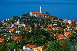 Pohled z Barcelos směrem na jih k oceánu přes kostel sv. Martina a kopec Pico da Cruz (vlevo).