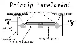 Technicky se tunelování provádí zabalením (zapouzdřením) datových prvků (PDU - Protocol Data Unit) přenášeného (tunelovaného) protokolu do PDU jiného protokolu. Přitom je obvykle narušeno normální pořadí vrstev, protože se PDU jedné vrstvy referenčního modelu ISO/OSI balí (zapouzdřuje) do PDU vyšší nebo stejné vrstvy.