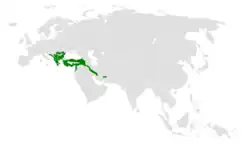![]() Areál rozšíření poddruhů sýkory temné, na mapě není zahrnut areál výskytu poddruhu Poecile lugubris hyrcanus, který je někdy považován za samostatný druh Poecile hyrcanus (sýkora íránská). | |
