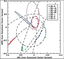 - ↑ GHEZ, A. M.; SALIM, S.; HORNSTEIN, S. D. Stellar Orbits around the Galactic Center Black Hole. The Astrophysical Journal. 2005-02-20, roč. 620, čís. 2, s. 744–757. Dostupné online [cit. 2025-02-03]. ISSN 0004-637X. doi:10.1086/427175. (anglicky)