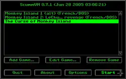 ScummVM je Open source software, který umožňuje spuštění starších adventur používajících SCUMM engine na současných konfiguracích. Například The Curse of Monkey Island nelze spustit na většině instalacích Windows XP a Mac OS. Hra funguje bezproblémově při spuštění přes program ScummVM