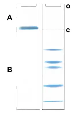 Když zóna obsahující proteiny dosáhne rozdělovacího gelu o pH kolem 8, glycin v elektrolytu získá záporný náboj, čímž přestane tvořit terminující ion a proteiny se začnou dělit podle své elektroforetické mobility.