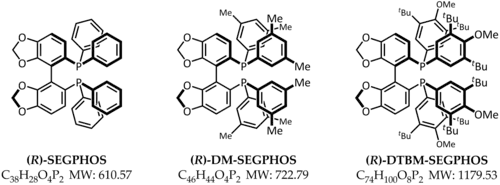 Komerčně jsou dostupné rovněž deriváty DM-SEGPHOS (kde jsou fenylové skupiny nahrazeny 3,5-dimethylfenylovými) a DTBM-SEGPHOS (fenyly jsou nahrazeny 3,5-di-t-butyl-4-methoxyfenyly).