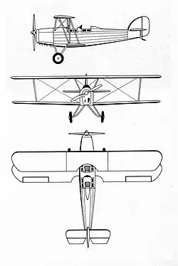 Byl to konvenční dvouplošník s křídly vyztuženými N-vzpěrami. Byl vybaven pevným podvozkem na trubkové konstrukci a s konvenční ostruhou na zádi trupu.