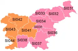 - Na úrovni NUTS 3 figurují statistické regiony Slovinska