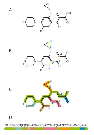 V tomto článku byl použit překlad textu z článku Simplified molecular input line entry specification na anglické Wikipedii.