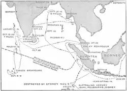 Po této akci Emden zamířil ke Kokosovým ostrovům, kde měl Müller v plánu zničit vysílací stanici Eastern Telegraph Company na ostrově Direction. Tím by byla výrazně narušena spojenecká námořní komunikace v Indickém oceánu. Následně plánoval proplout Indickým oceánem až k nejvýchodnějšímu cípu Afriky při Sokotře. Při této plavbě by mohl narušit námořní transport Dohody na linii Bombaj-Aden.