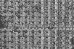 Na přiložených obrázcích jsou vyobrazeny buňky paměti SRAM pomocí rastrovacího elektronového mikroskopu a optického mikroskopu.
