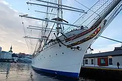 SS Statsraad Lehmkuhl je cvičný trojstěžňový bark využívaný norským námořnictvem.[2]