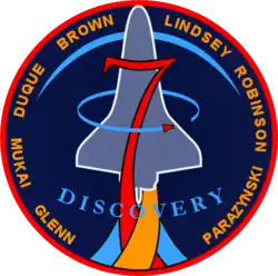 | Nahoře: Parazynski, Robinson, Mukaiová, Duque, Glenn Dole: Lindsey, Brown | |