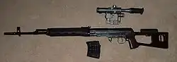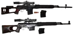 Podle původních záměrů byla puška určena jako zbraň střelecké podpory družstva. Měla za úkol rozšířit účinné pole palby družstva. Je komorována pro výkonný náboj 7,62x54R Mosin, který je účinný na vzdálenost 1000 m a více. Konstruktérem této zbraně byl Jevgenij Dragunov. V nouzi je tuto pušku možno použít i práci samostatné odstřelovače, příklady takového nasazení jsou například z Vietnamského konfliktu, nebo v Iráku na straně rebelů, též ji používají odstřelovači policie a jednotek ministerstva vnitra Ruské federace a dříve Sovětského svazu, stejně tak byla používána odstřelovači SNB v ČSSR. Puška byla rychle nasazena do všech armád Varšavské smlouvy.